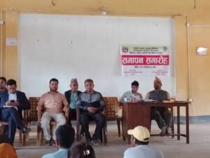 भेरी राप्ती प्राविधिक शिक्षालयका प्रतिनिधि सुरज पंगेनीको अध्यक्षतामा पालिकाको सभाहलमा भएको समापन तथा प्रमाण-पत्र वितरण समारोहमा चौकुने गाउँपालिका अध्यक्ष खडक बिवस बासपाने को प्रमुख अतिथि बिशेष अतिथिमा पालिका उपाध्यक्ष नर बहादुर बान्तोला र प्रमुख प्रशासकीय अधिकृत पुर्ण बहादुर बि क को आतिथ्यमा कार्यक्रम समापन भएको थियो यस्तै वडा न ६ का वडा अध्यक्ष गोबिन्द थापा , वडा न ९ का वडा अध्यक्ष कविराम खनाल को उपस्थित रहेको थियो भने ,समापन कार्यक्रममा चौकुने गाउँपालिका रोजगार संयोजक कमल कृष्ण जैसीको स्वागत मन्तब्य सँगै ईलोक्ट्रोनिक र डकर्मी सम्बन्धि र जीवन उपयोगी सीप विकासका लागि तालिमको आयोजना गरिएसँगै आज ५० दिनसम्म चलेको तालिम सम्पन्न भएको बताउनु भएको छ ।