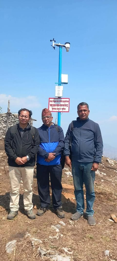 चौकुने गाउँपालिकाकाे चिनरास मालिका डाँडामा वायु ऊर्जा अध्ययनका लागि मेट्रोलोजी स्टेशन स्थापना